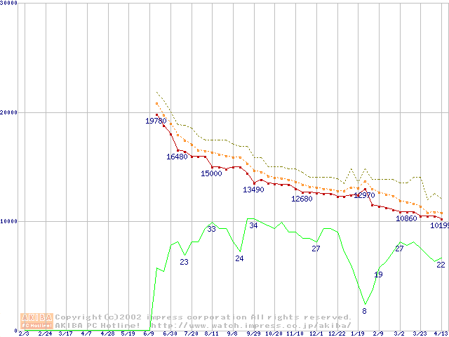 U6 (5400rpm,UltraATA/100 2MB 40GB/Platter)の最安値推移