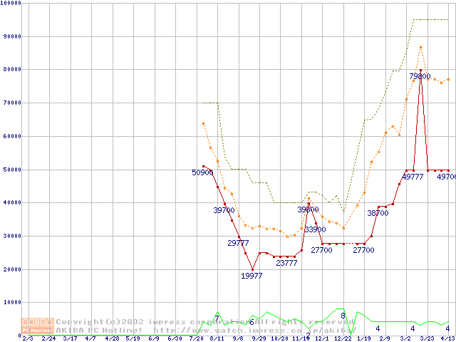 PC133 SDRAM DIMM CasLatency=3 ECC対応 Registeredタイプの最安値推移