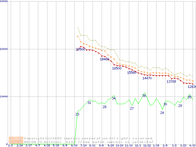 Barracuda ATA IV (7200rpm,UltraATA/100 2MB 40GB/Platter,流体軸受)の最安値推移