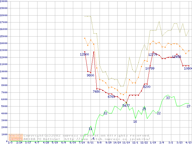 メモリ主要製品の最安値推移