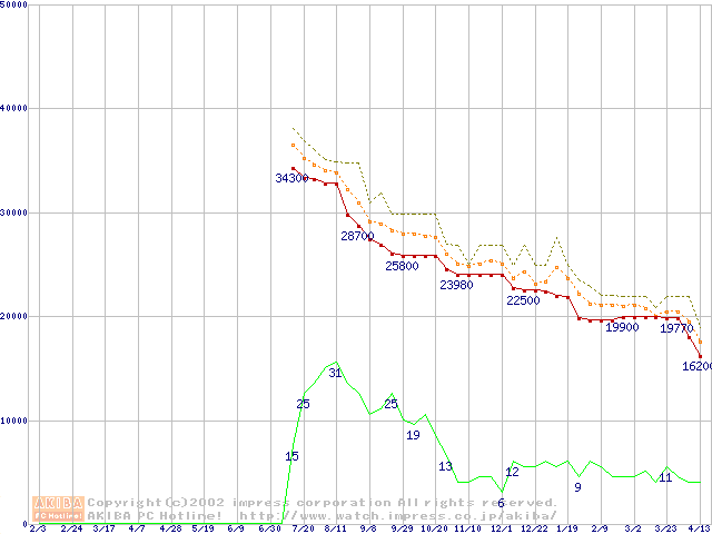 Pentium III 1.13AGHz FC-PGA2 リテールパッケージの価格推移