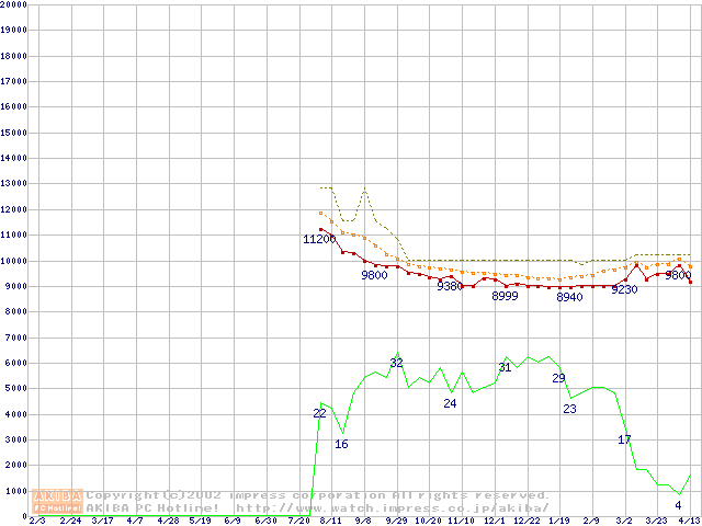 Barracuda ATA IV (7200rpm,UltraATA/100 2MB 40GB/Platter,流体軸受)の最安値推移