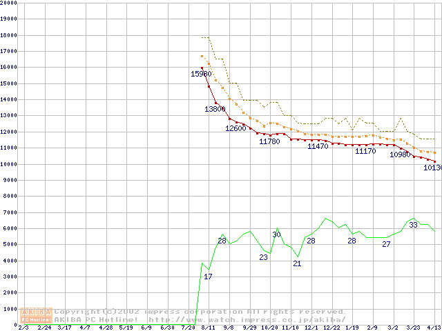 Barracuda ATA IV (7200rpm,UltraATA/100 2MB 40GB/Platter,流体軸受)の最安値推移