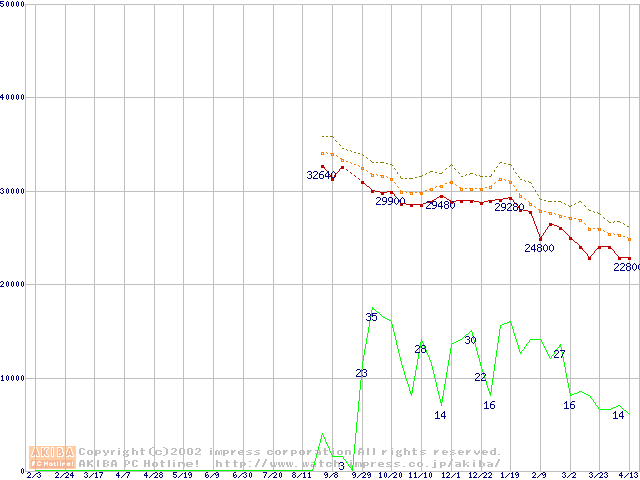 Pentium 4 1.80GHz(478pin)リテールパッケージの価格推移