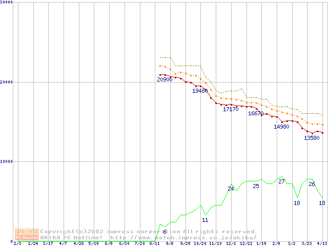 DiamondMax D540X (5400rpm,UltraATA/100,40GB/Platter)の最安値推移