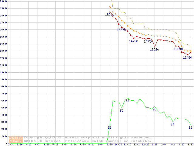 DiamondMax Plus D740X (7200rpm,UltraATA/133,40GB/Platter)の最安値推移