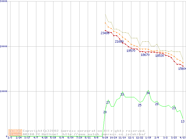 DiamondMax Plus D740X (7200rpm,UltraATA/133,40GB/Platter)の最安値推移