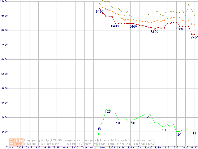 Celeron 950MHz FC-PGA リテールパッケージの価格推移