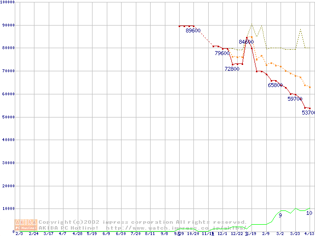 メモリ主要製品の最安値推移