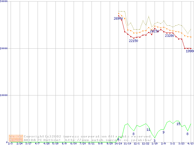 Socket A (Palomino,OPGA,FSB 266MHz,L2 256KB)の最安値推移