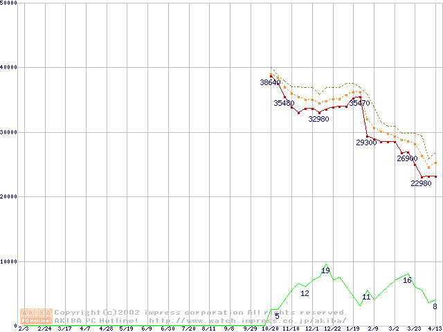 Socket A (Palomino,OPGA,FSB 266MHz,L2 256KB)の最安値推移