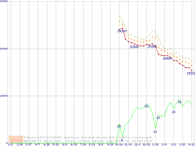 Athlon XP 1700+ (1.47GHz) リテールパッケージの価格推移