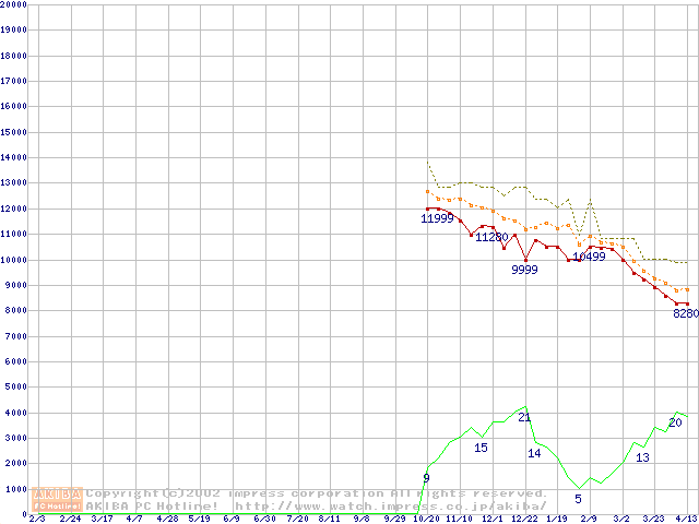 Duron 1.1GHz リテールパッケージの価格推移