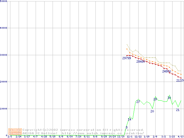 DiamondMax D540X (5400rpm,UltraATA/133,40GB/Platter)の最安値推移
