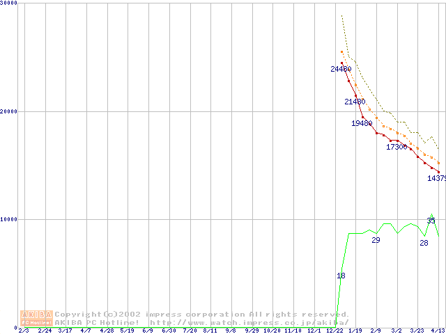 Deskstar 120GXP (7200rpm,UltraATA/100 2MB)の最安値推移