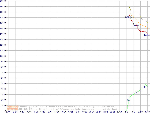 DiamondMax D540X (5400rpm,UltraATA/100,40GB/Platter,流体軸受)の最安値推移
