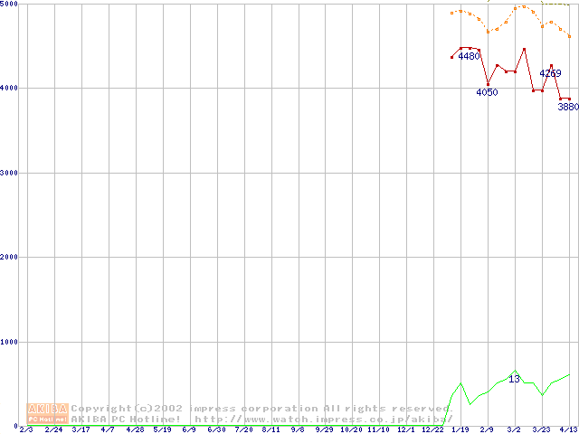 メモリ主要製品(最安値5千円未満)の最安値推移
