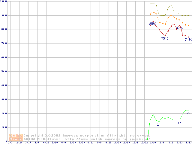 PC2100(DDR266) DDR SDRAM DIMM(CL 2.0)の最安値推移