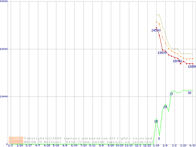 Pentium 4 1.60A GHz リテールパッケージの価格推移