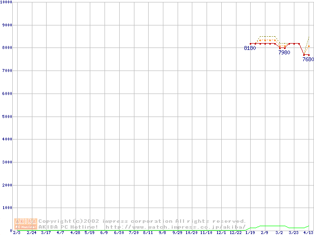 Socket 370 (PGA,FSB 133MHz,L2 64KB)の最安値推移
