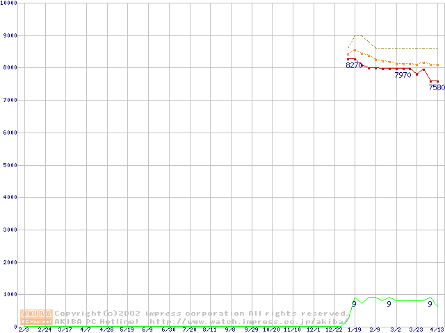 Socket 370 (PGA,FSB 100MHz,L2 64KB)の最安値推移
