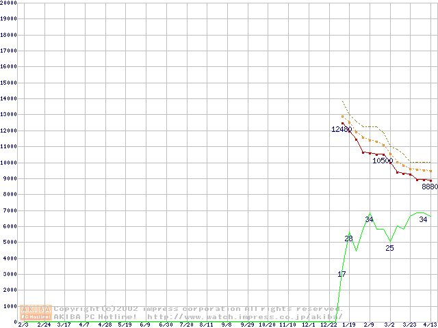 Celeron 1.10A GHz FC-PGA2 リテールパッケージの価格推移