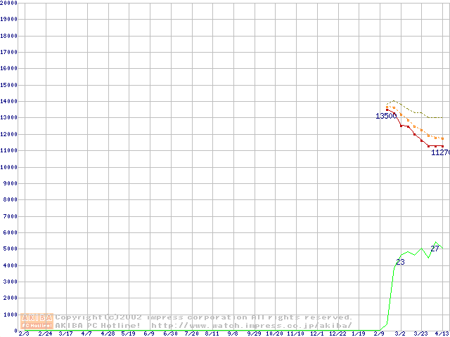 Socket A (Morgan,PGA,FSB 200MHz,L2 64KB)の最安値推移