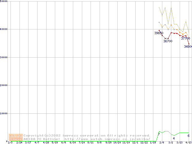 Socket 603 (micro-PGA,L2 512KB,Hyper-Threading,Prestonia)の最安値推移