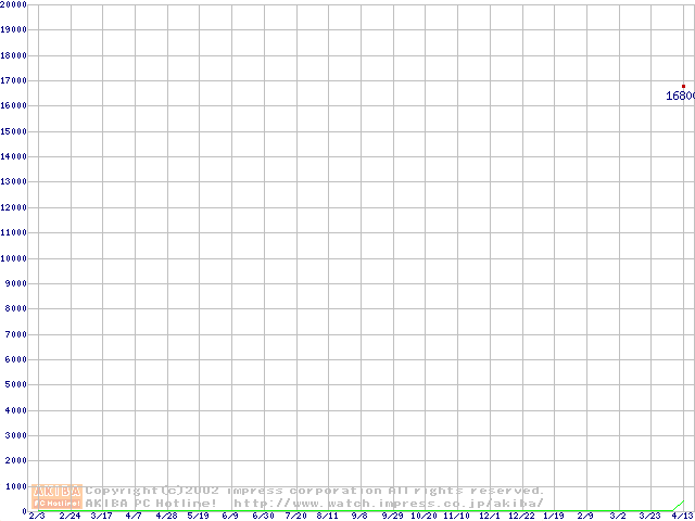 Travelstar 40GN (9.5mm,4200rpm,UltraATA/100,20GB/Platter,2MB,流体軸受)の最安値推移