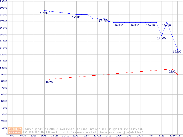 | DKシリーズ (9.5mm,4200rpm)の最安値推移 |