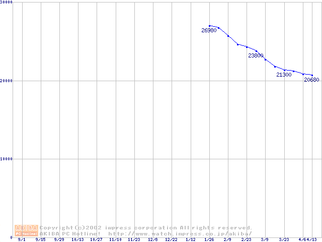 | [↑前グラフ]: | Travelstar 15GN (9.5mm,4200rpm,UltraATA/100,512KB,流体軸受)の最安値推移 |