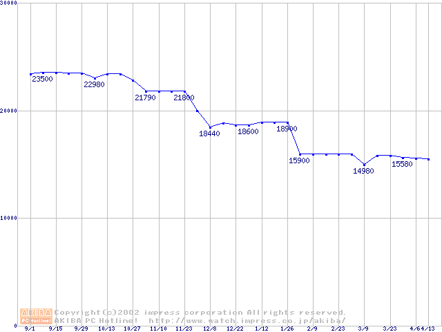 | [↑前グラフ]: | Socket 370 (FC-PGA2,FSB 133MHz,L2 256KB)の最安値推移 |