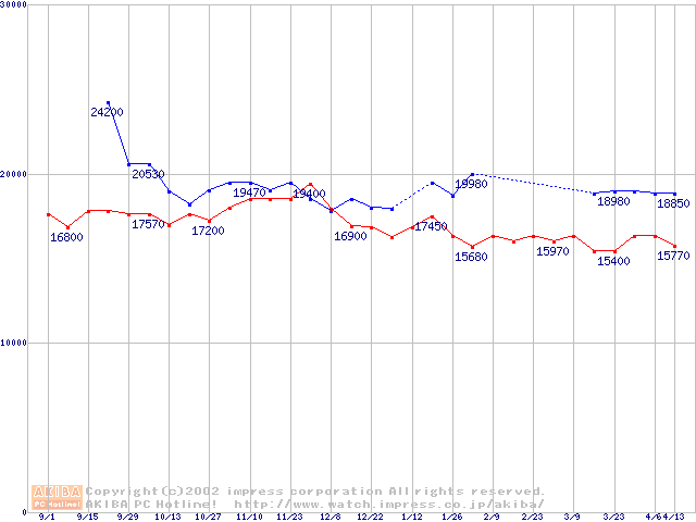 | [↓次グラフ]: | Slot 1 (SECC2,FSB 133MHz,L2 256KB)の最安値推移 |