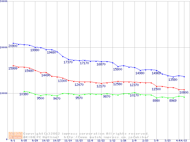 | [↓次グラフ]: | 541DX (5400rpm,UltraATA/100)の最安値推移 |