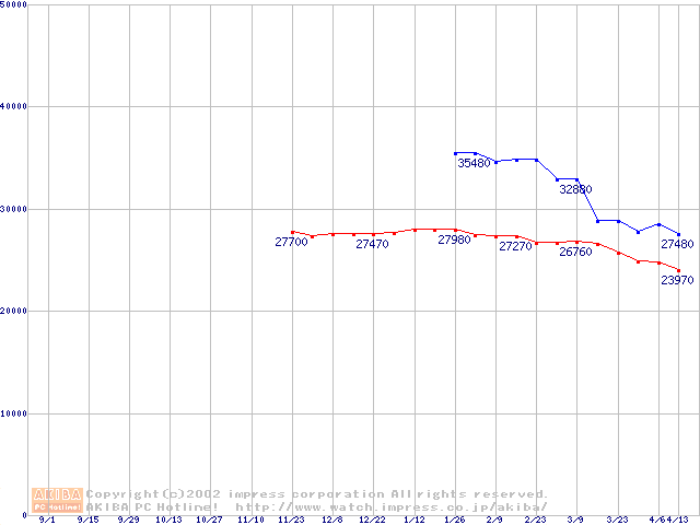 | [↑前グラフ]: | U5 (5400rpm,UltraATA/100 512KB)の最安値推移 |