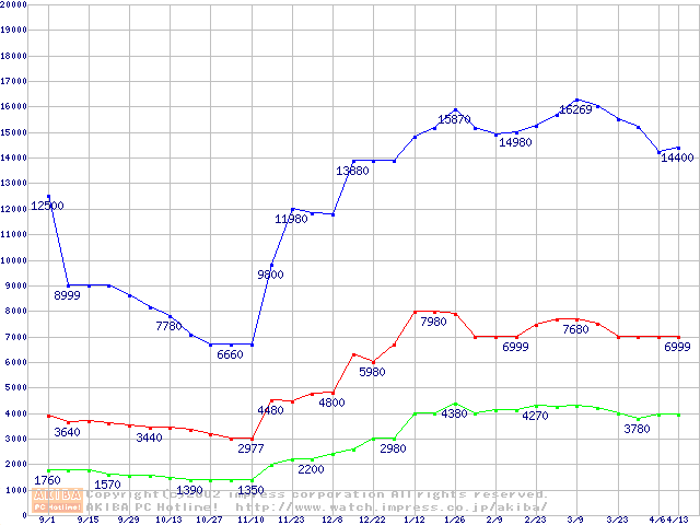 PC2100(DDR266) DDR SDRAM DIMM(CL 2.0)の最安値推移