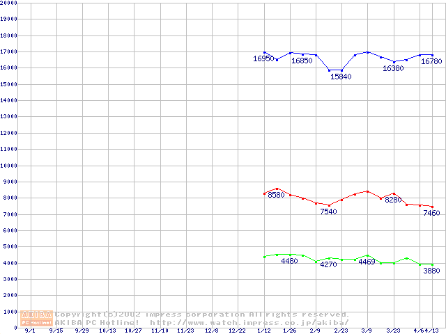 | [↓次グラフ]: | PC2700(DDR333) DDR SDRAM DIMMの最安値推移 |
