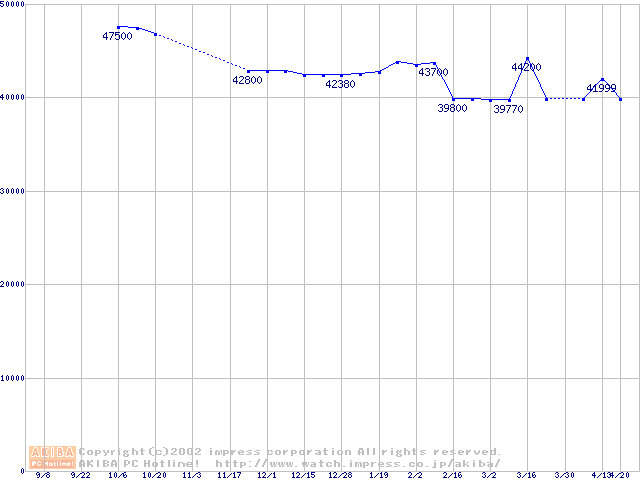 | [↑前グラフ]: | 2.5インチHDD 40GB~50GB未満(9.5mm厚)の最安値推移 |