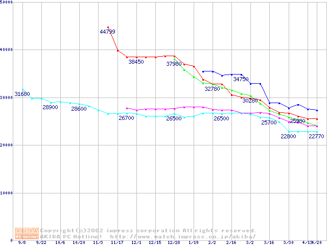HDD 100GB以上(7200rpmクラス)の最安値推移