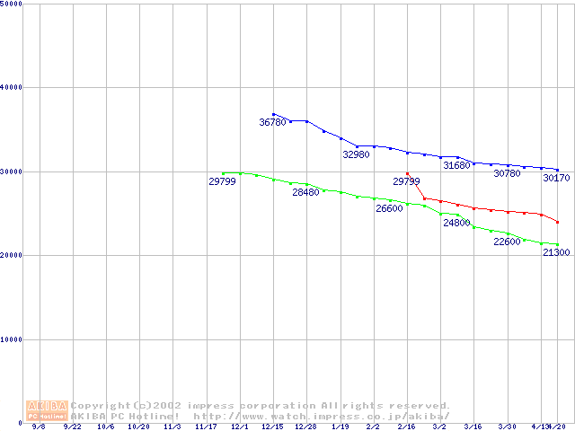 | [↓次グラフ]: | HDD 20GB~30GB未満(7200rpmクラス)の最安値推移 |