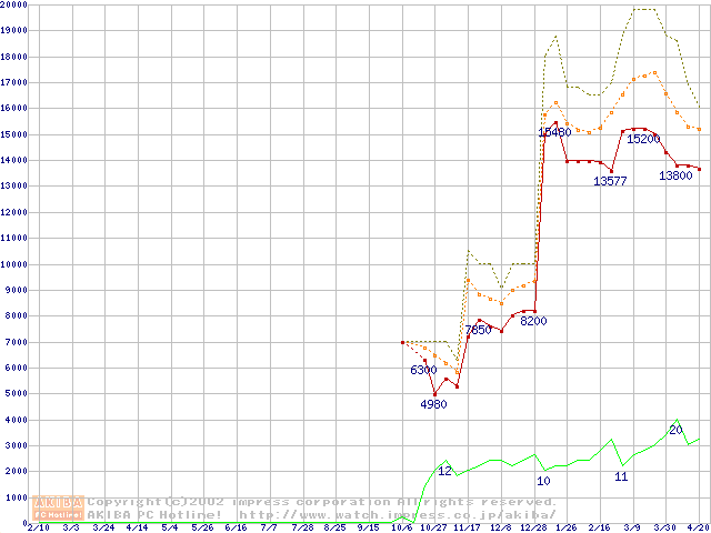 PC133 SDRAM DIMM CasLatency=2の最安値推移