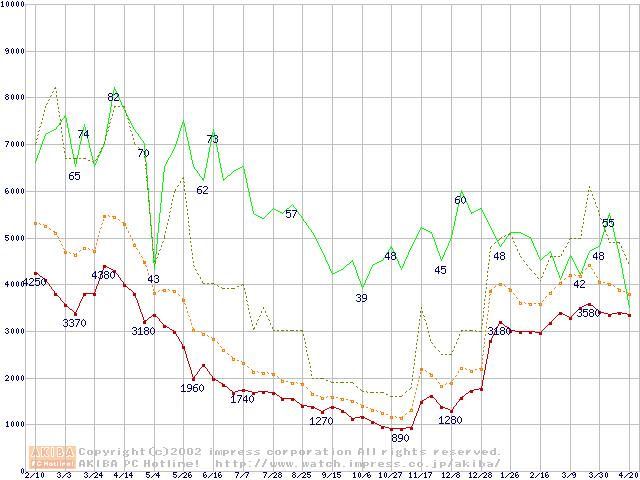 メモリ主要製品の最安値推移