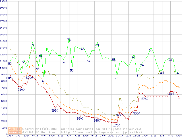 PC133 SDRAM DIMM CasLatency=3の最安値推移