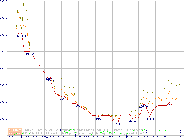 PC100 SDRAM DIMM CasLatency=2 ECC対応の最安値推移