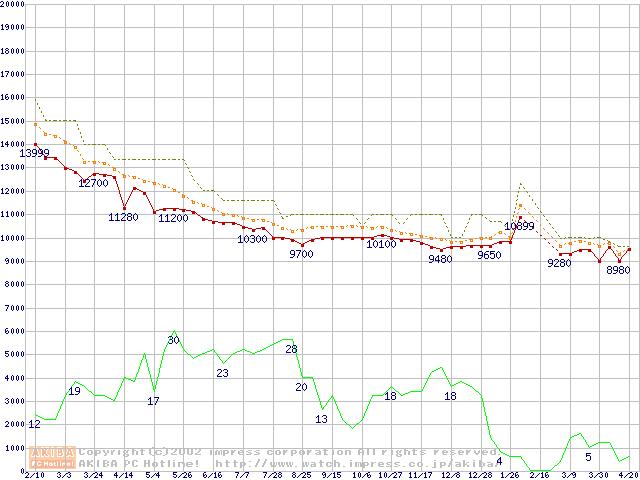 MPG3xxxAT (5400rpm,UltraATA/100)の最安値推移