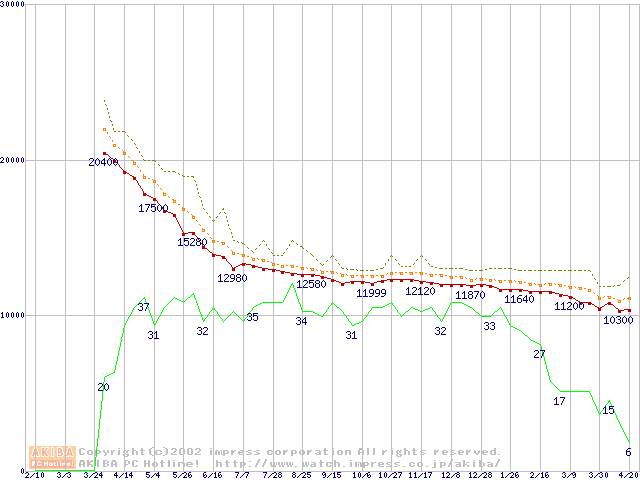 Deskstar 60GXP (7200rpm,UltraATA/100 2MB)の最安値推移