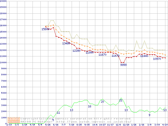 MPG3xxxAH-E (7200rpm,UltraATA/100)の最安値推移