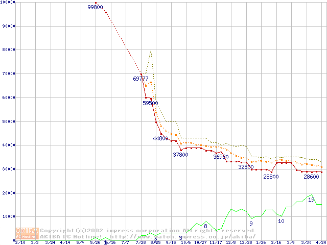 PC800 DRDRAM RIMMの最安値推移