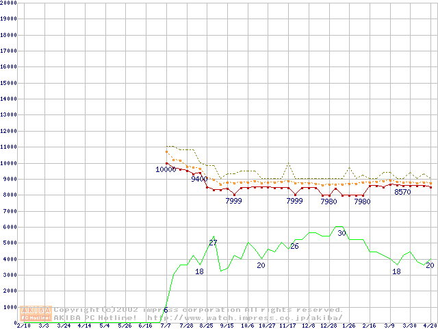 U6 (5400rpm,UltraATA/100 2MB 40GB/Platter)の最安値推移