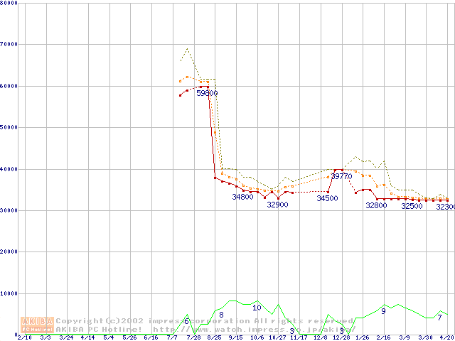 Socket 603 (micro-PGA,L2 256KB,Foster)の最安値推移